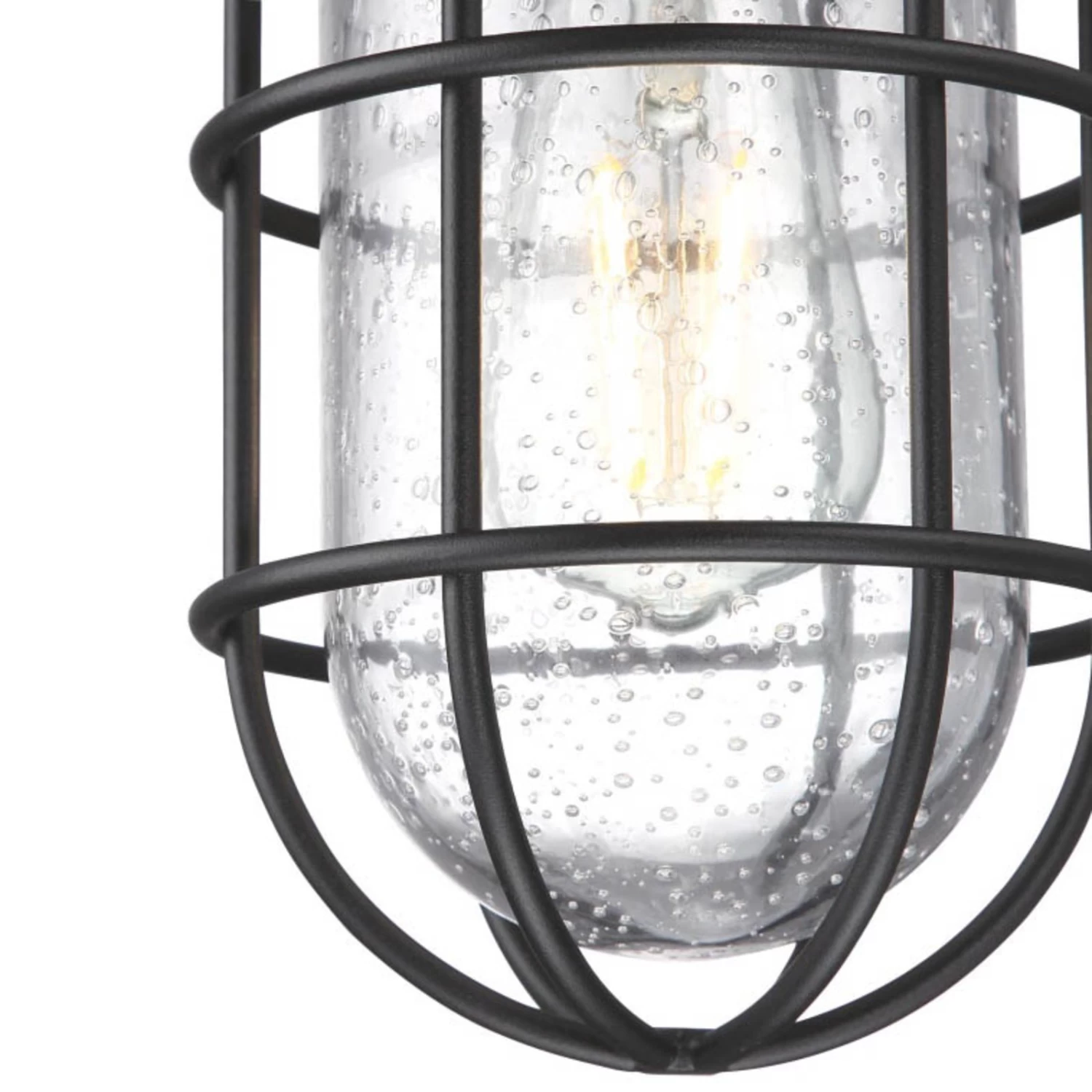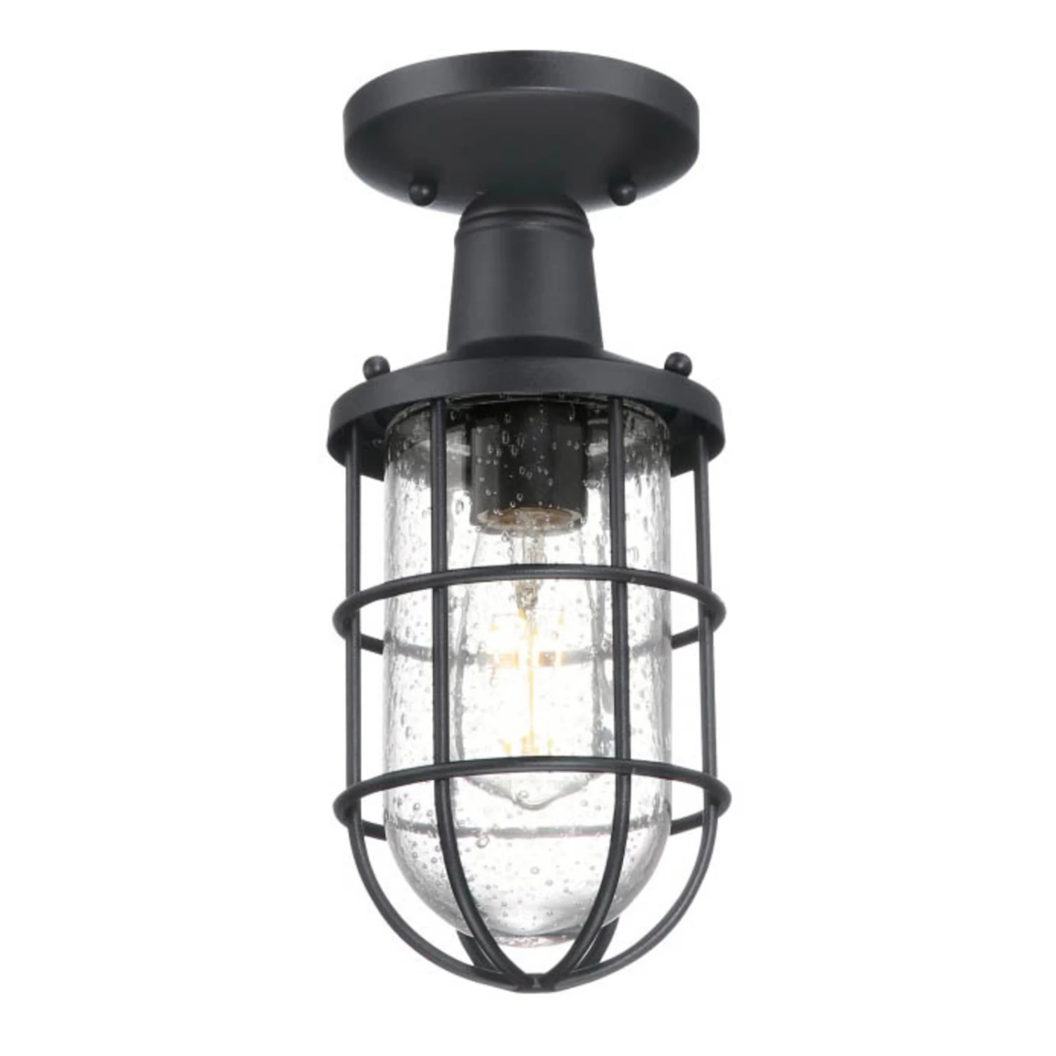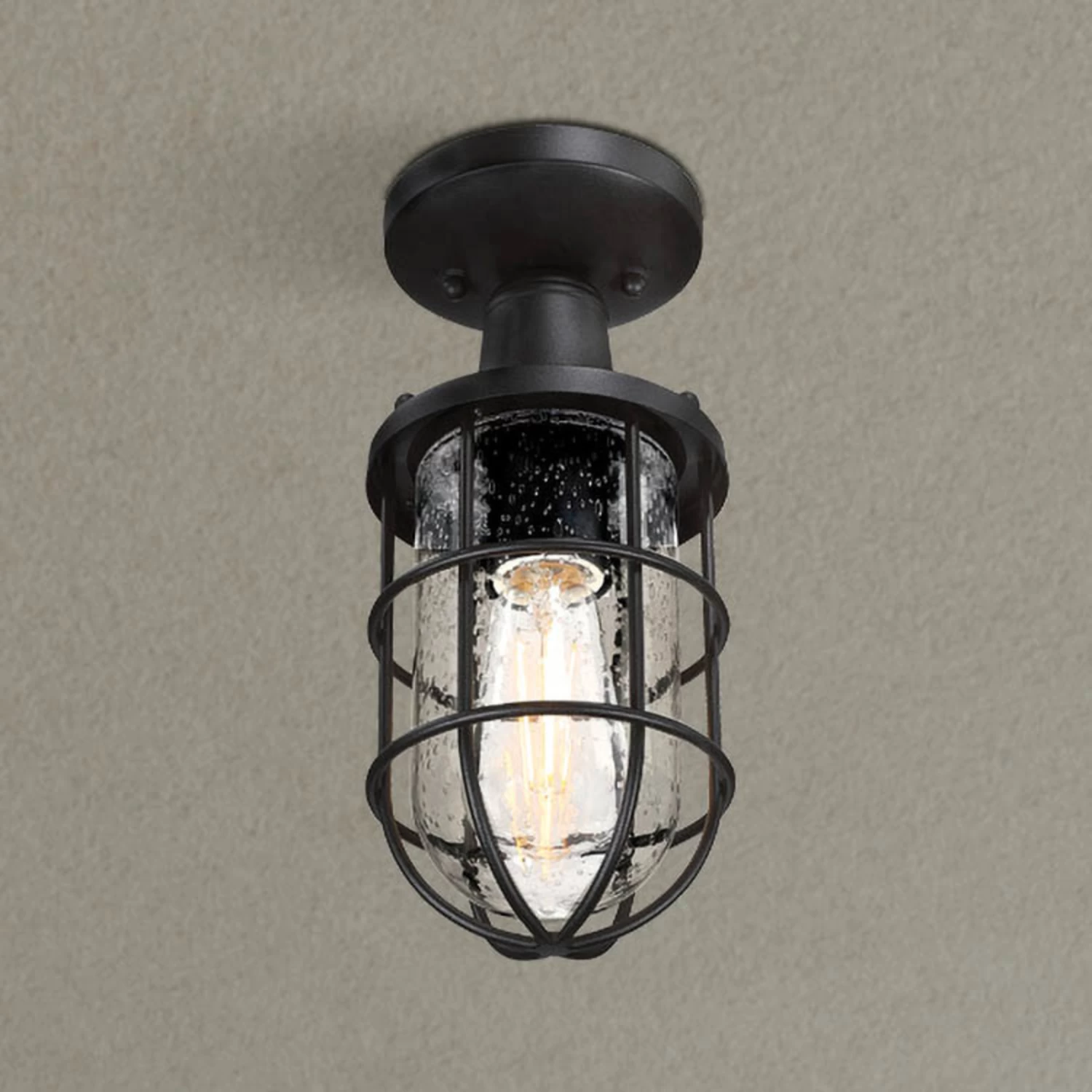 Käfigförmige Außendeckenleuchte Crestview aus Stahl und mundgeblasenem Antikglas